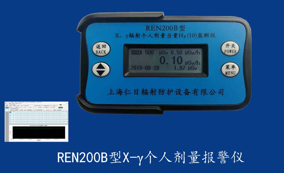 REN210型X、γ、中子個(gè)人輻射報(bào)警儀內(nèi)置SiPM和鋰玻璃晶體組成中子探測(cè)器儀器,采用反照率方式探測(cè)中子射線,同時(shí)也能探測(cè)X、γ射線。因此它可同事監(jiān)檢測(cè)X、γ、中子三種射線。能顯示工作場(chǎng)所的劑量當(dāng)量率和累積劑量,更換電池時(shí),日期及累積數(shù)據(jù)能永久保存。可選配RenRiPersonal個(gè)人劑量管理軟件,該軟件可存儲(chǔ)多個(gè)人的歷史數(shù)據(jù),能記錄日累積、月累積、年累積、輻照時(shí)長(zhǎng)、計(jì)算平均劑量率、扣除或不扣除本底輻射,且以文字和圖譜的方式展現(xiàn)數(shù)據(jù)。廣泛應(yīng)用于環(huán)保、化工、水泥、煤礦、土木工程、石油、醫(yī)院、疾控、進(jìn)出口商檢、核電、加速器、機(jī)場(chǎng)、中子源庫和其他安檢、邊境控制海關(guān)檢測(cè)等領(lǐng)域中的工作人員進(jìn)行個(gè)人安全防護(hù)
